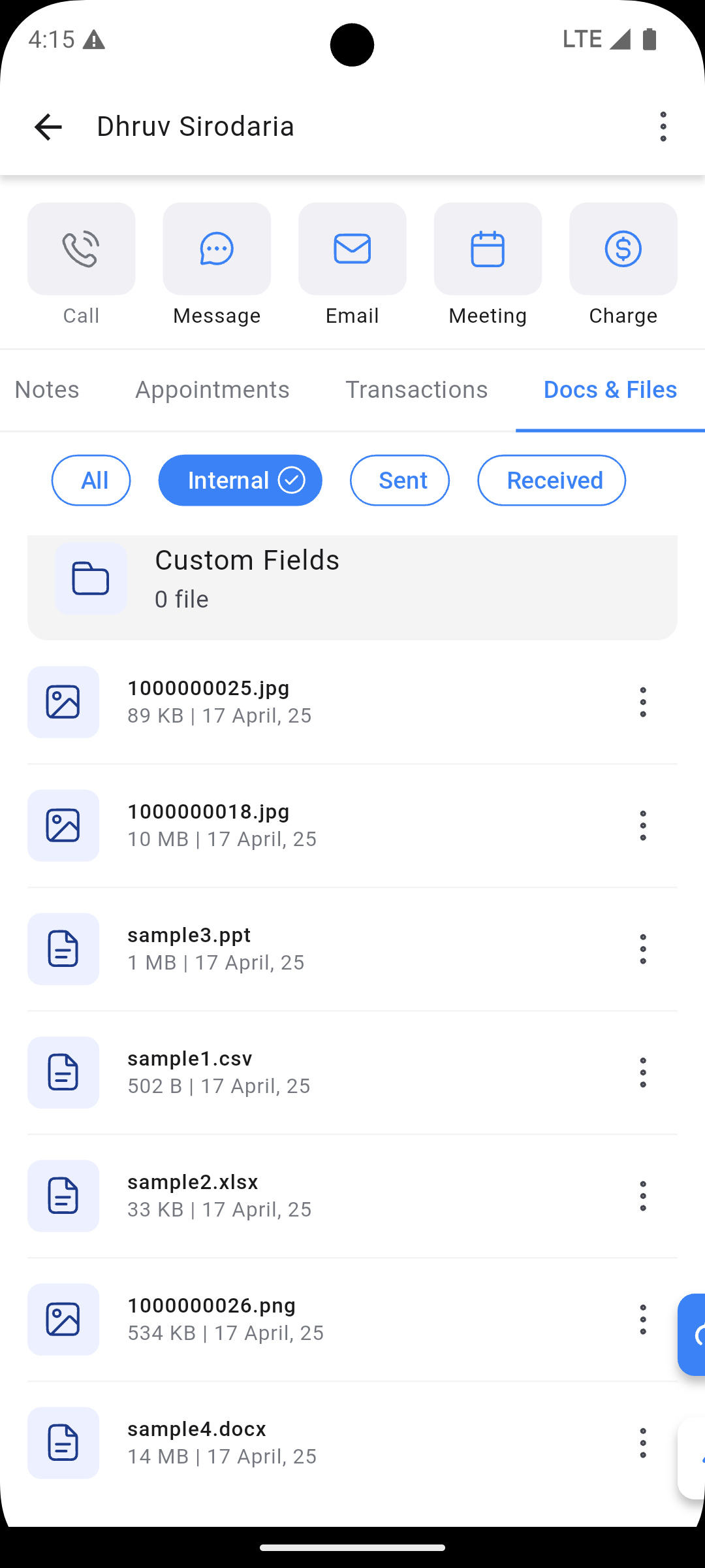 Whether you’re sending contracts, sharing estimates, attaching invoices, or tracking signed agreements, the Docs and Files tab brings everything together. You can upload up to 10 files at once (up to 250 MB) in popular formats like PDF, DOC, JPG, PNG, PPT, and more — directly under each contact. Documents are automatically sorted into folders like Internal, Sent, Received, and even Custom Fields, so your files are always easy to find.